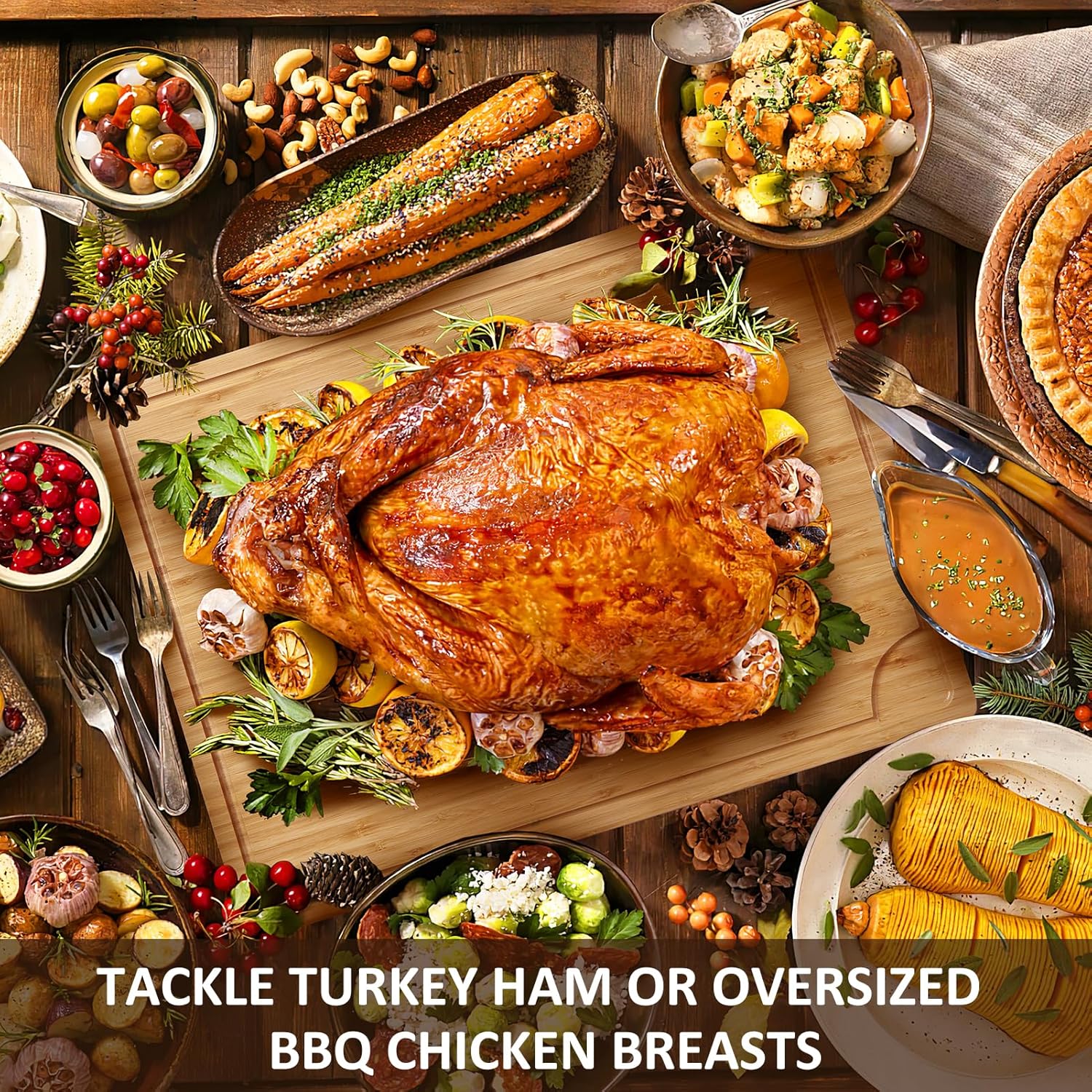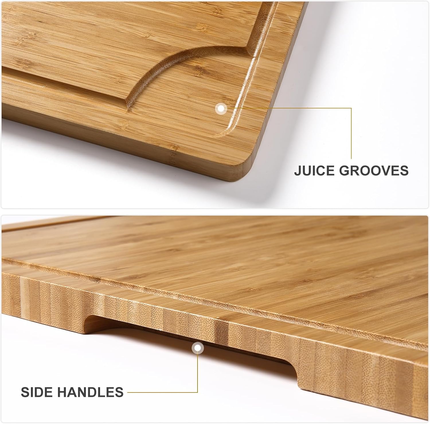 24″ Bamboo Cutting Boards for Kitchen, Extra Large Wood Cutting Board with Deep Juice Groove and Handle, Over the Sink Chopping Board, Heavy Duty Butcher Block for Turkey, Meat, Vegetables, BBQ