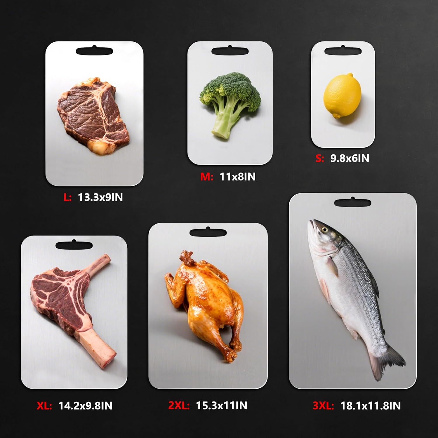 URMONA 3 PCS 304 Stainless Steel Cutting Board For Kitchen