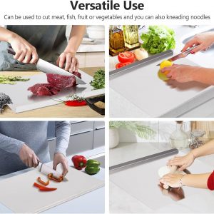 - Perfect Size & Practical Design: Large 16” x 12” (40 x 30cm) surface with a 1.5mm thickness, ideal for cutting meat, fruits, vegetables, bread, and baking. The lipped edge prevents spills, and the lightweight design saves counter space.