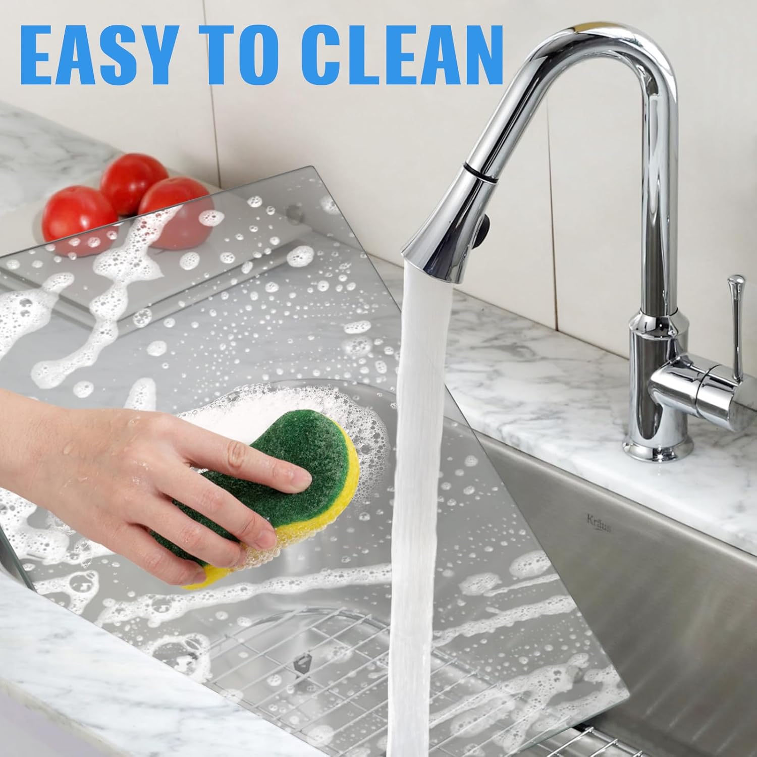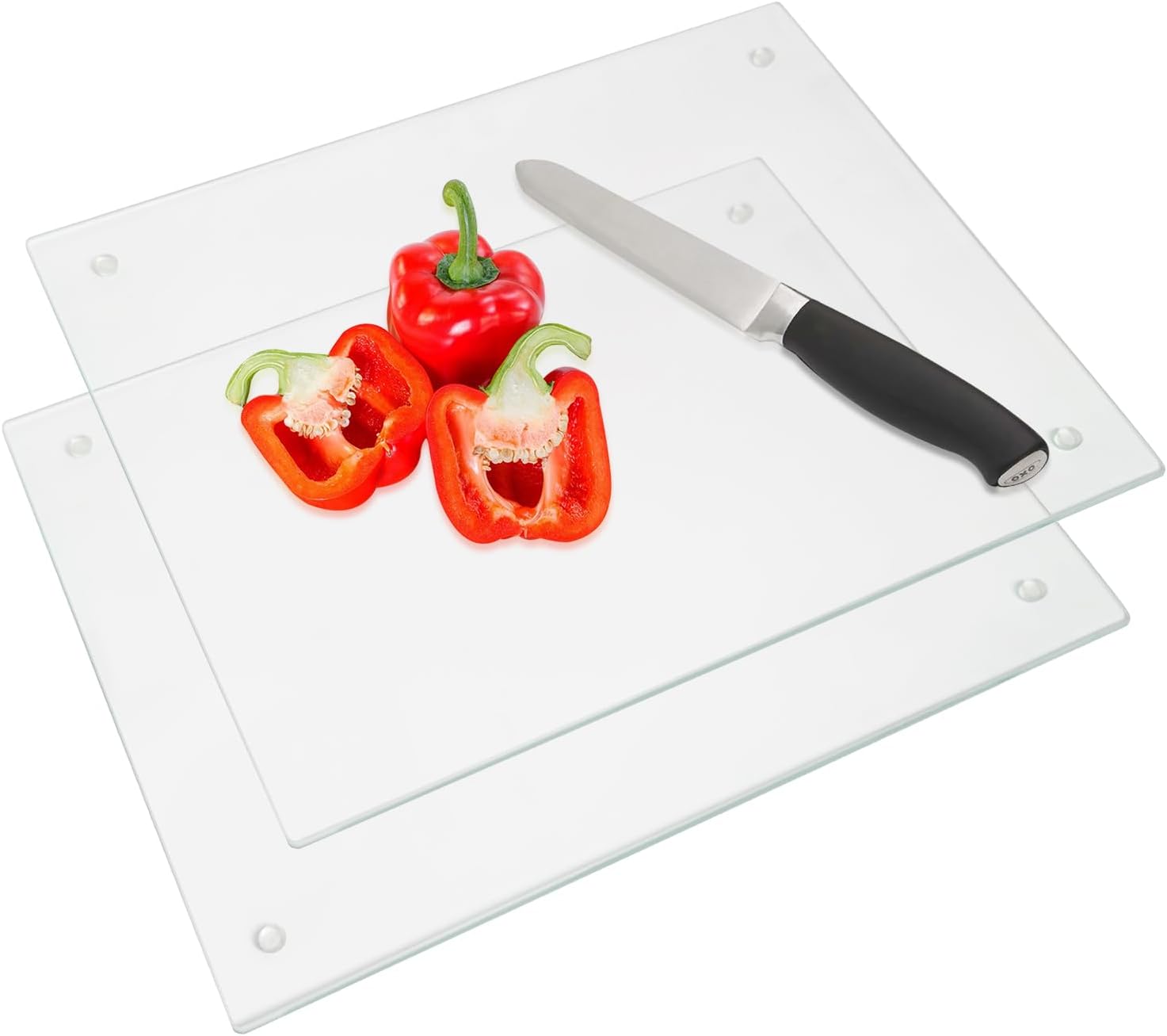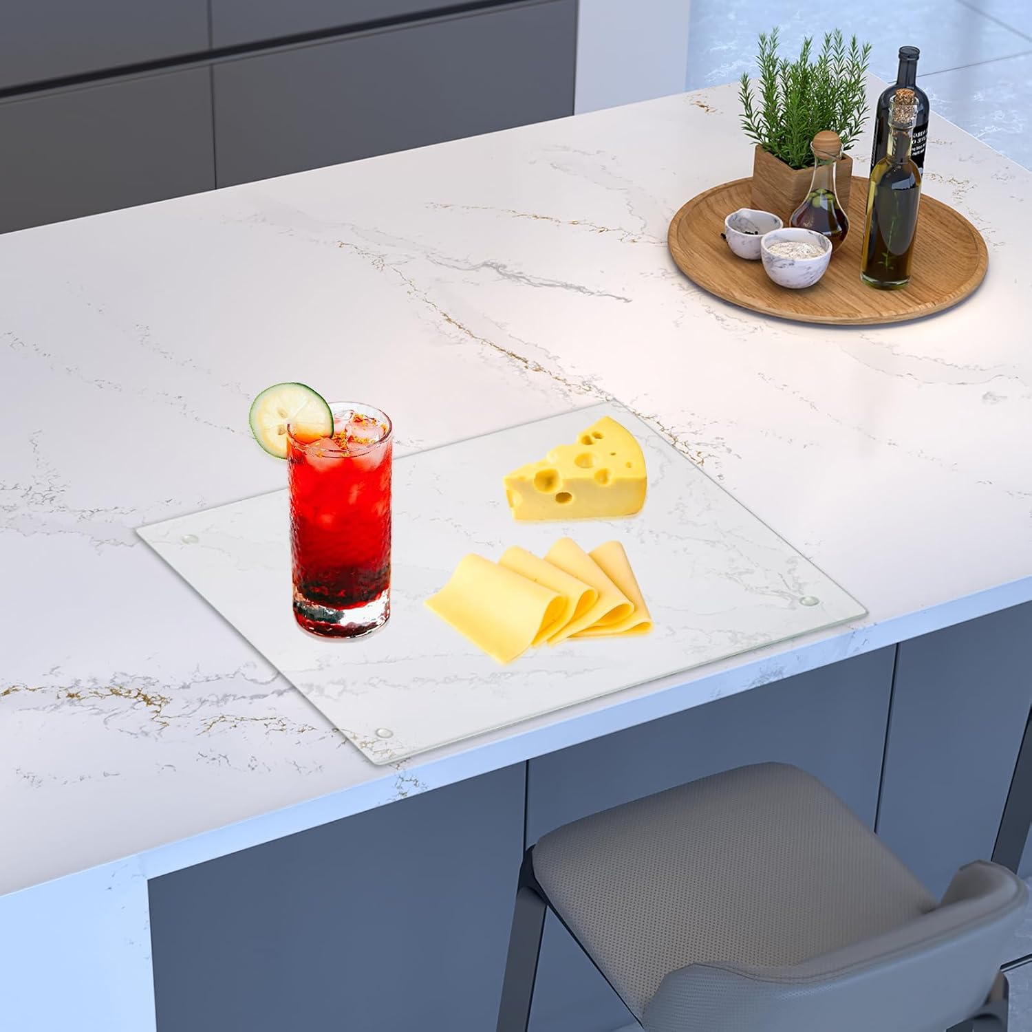 DHARANA Glass Cutting Board,10″ x 14″ Tempered Glass Cutting Board for Kitchen Counter,Scratch Resistant,Heat Resistant, with Non-Slip Feet
