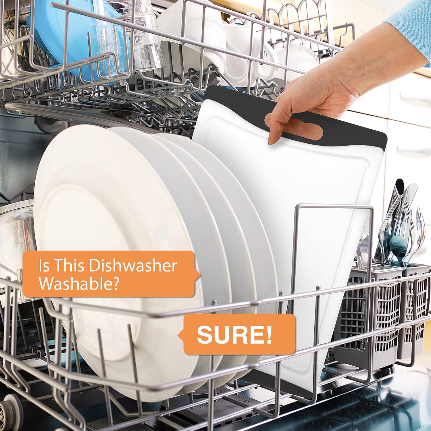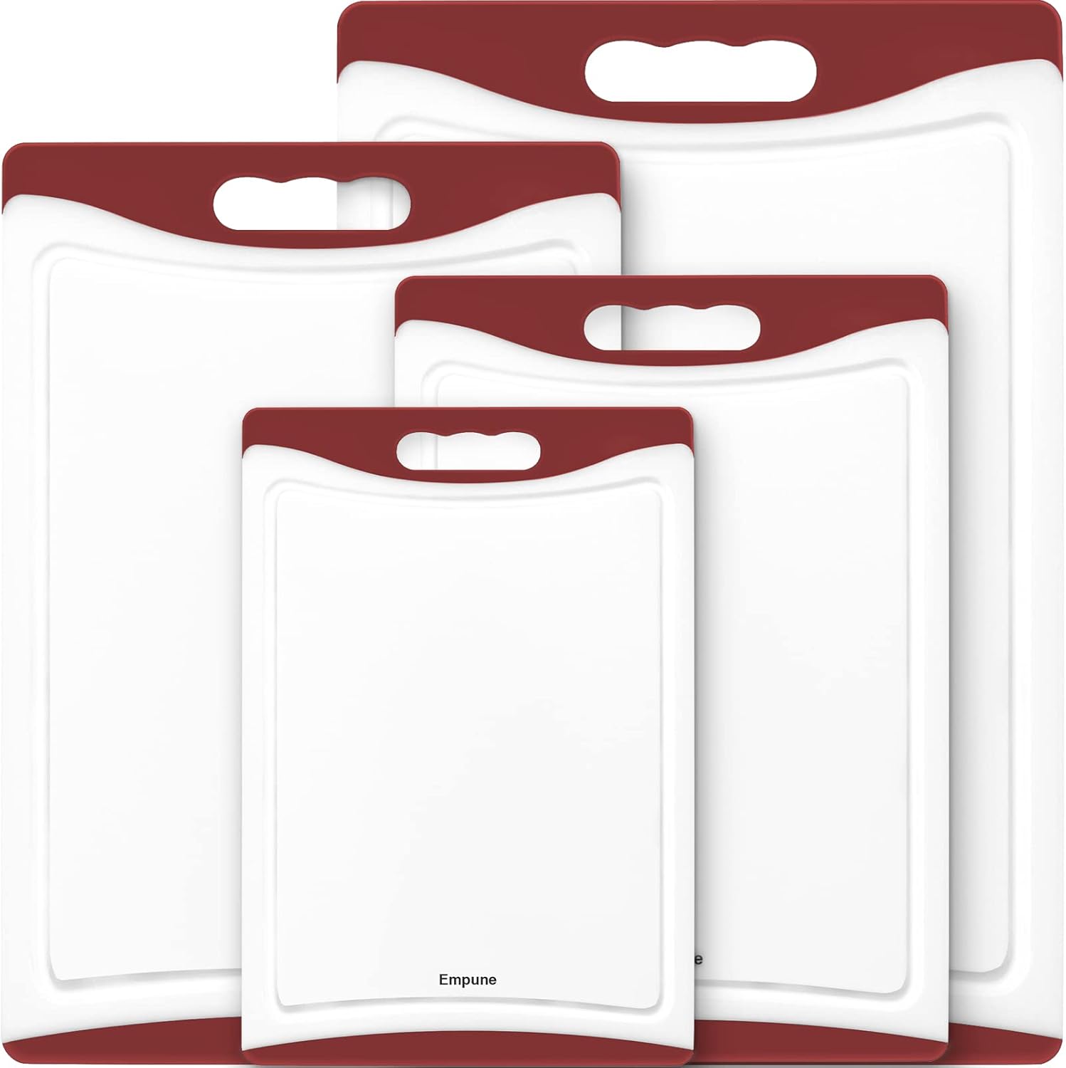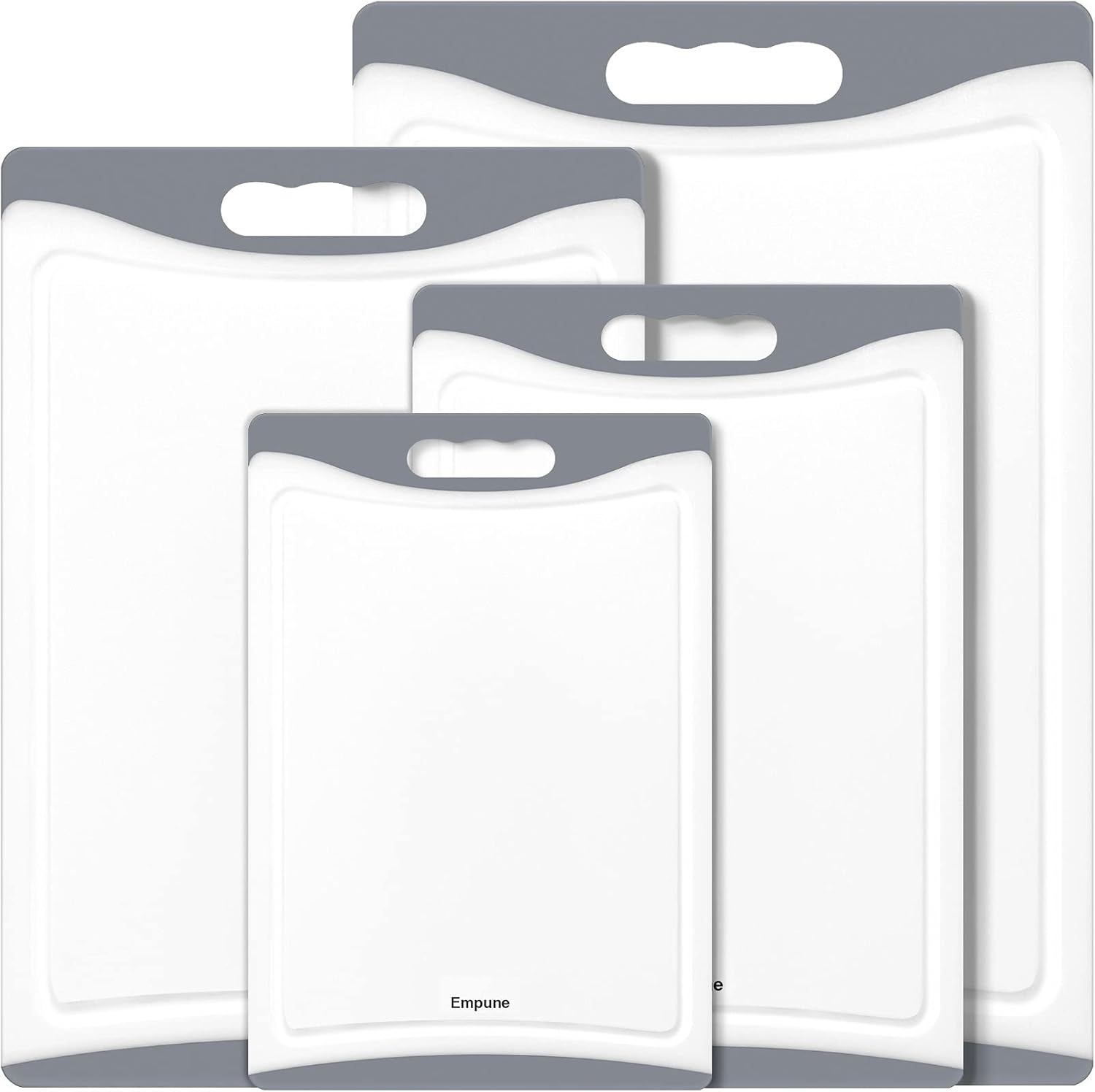 Extra Large Cutting Boards, Plastic for Kitchen (Set of 4) Dishwasher Chopping Board with Juice Grooves, Easy-Grip Handles, Black, Empune