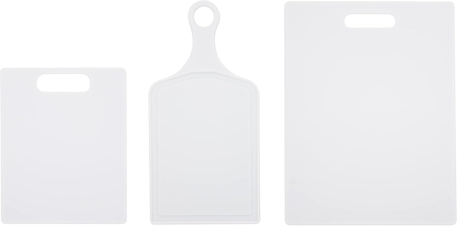 Farberware Plastic Cutting Board Set, Dishwasher- Safe Poly Chopping Board for Kitchen with Easy Grip Handles, Set of 3, White