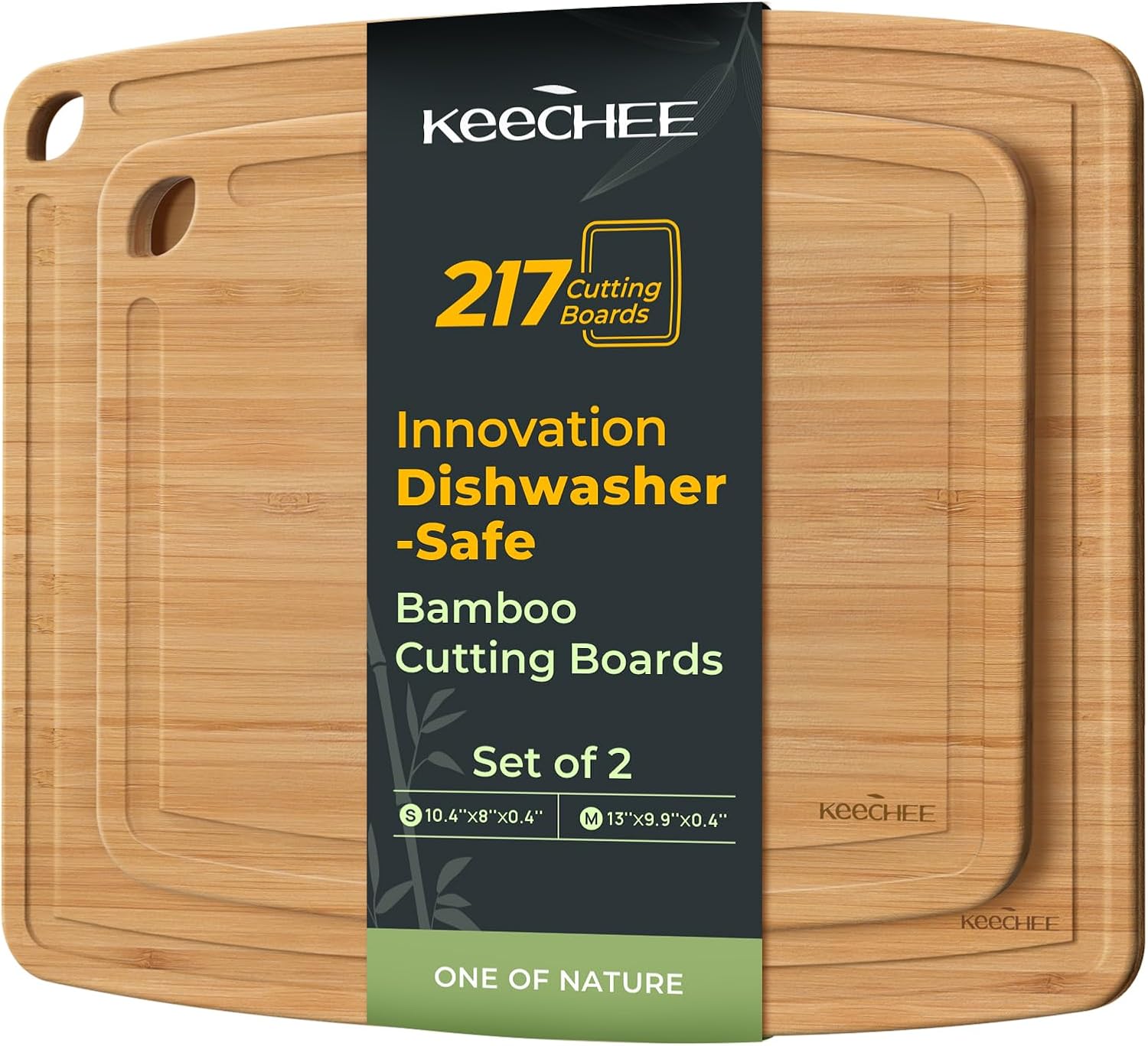 Keechee Dishwasher Safe Durable Lightweight Bamboo Wood Cutting Boards for Busy Kitchen, Easy Storage & Clean Wooden Chopping Boards Reversible with Juice Groove, Kitchen Gift for Home Cooks