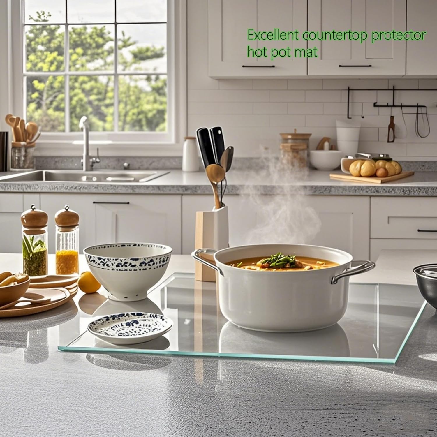 LANGBOHOS Tempered Glass Cutting Boards for Kitchen,Clear Cutting Board for Countertop,Non-slip Chopping Board,Table protection, Heat Resistant, Shatter Resistant (Clear, Set of 4)