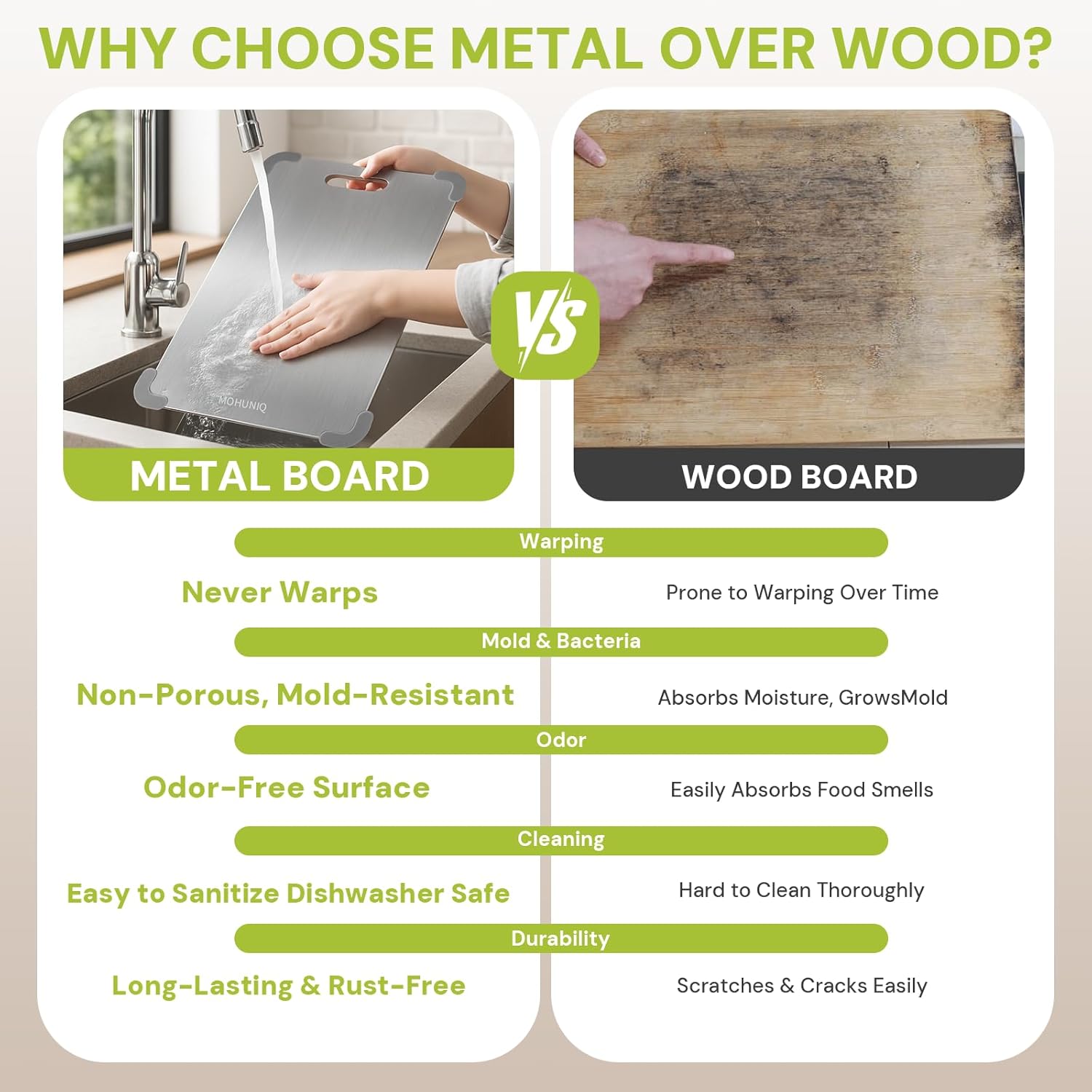 MOHUNIQ Stainless/Titanium Cutting Board for Kitchen
