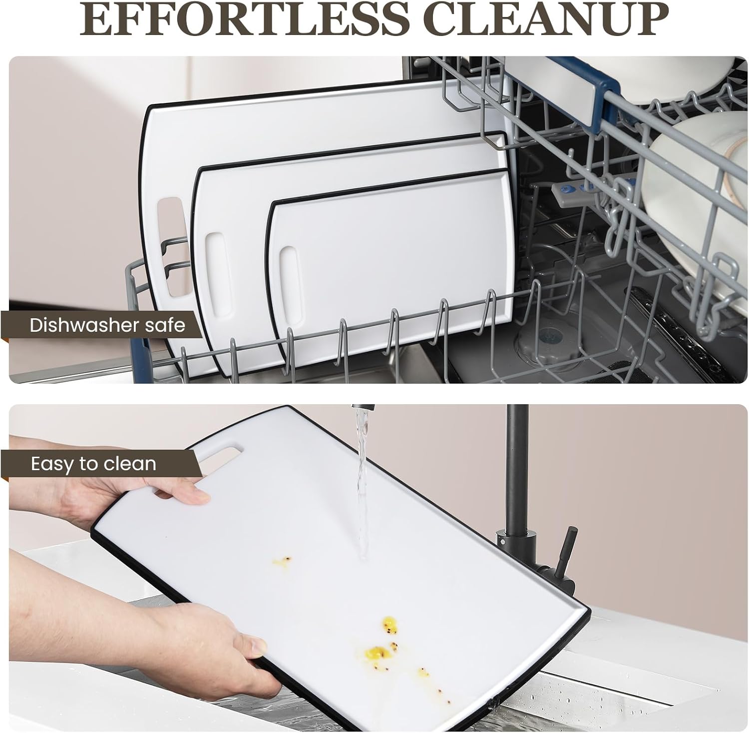 Non Slip Cutting Board, Kikcoin Extra Large Plastic Cutting Boards for Kitchen Dishwasher Safe Chopping Board Set of 3 with Juice Grooves, Easy Grip Handle