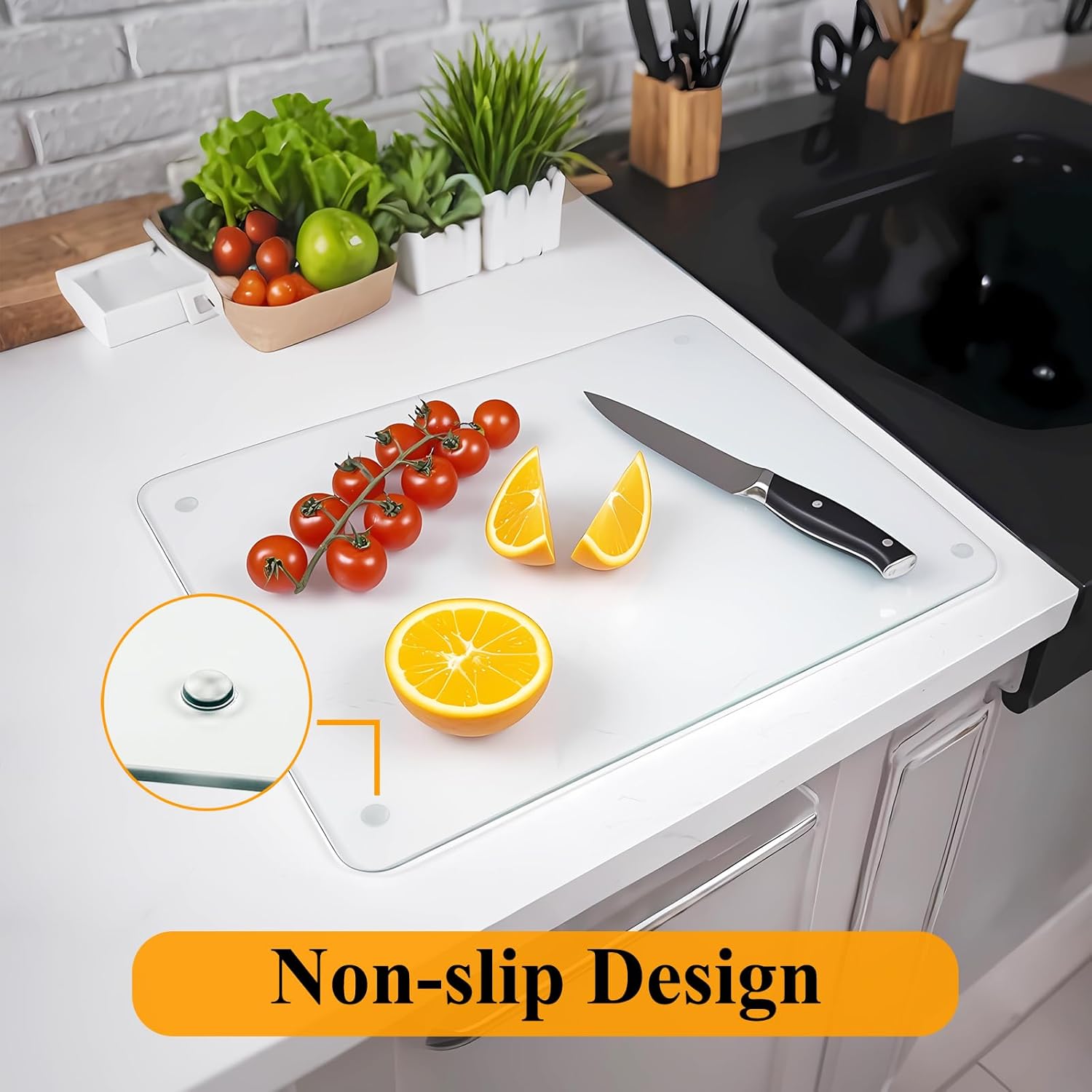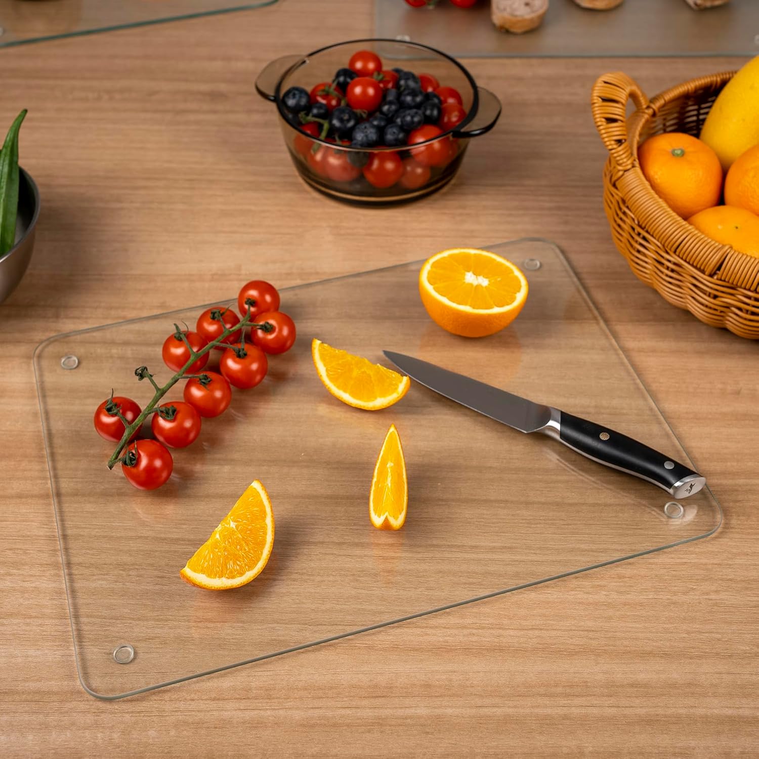 Tempered Glass Cutting Board for Kitchen, 12 x 16 Inch Clear Cutting Board with Non-Slip Feet for Countertop, Dishwasher Safe, Rounded Corner Board, Shatter, Heat & Scratch Resistant-Clear