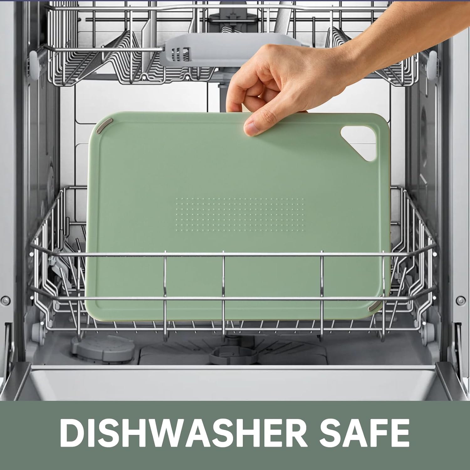 THETCHRY Plastic Cutting Board Set of 3-Cutting Boards for Kitchen BPA Free, Large-Small Chopping Boards Non-Slip for Cooking Camping Dishwasher Safe, Reversible, with Grip Handle, 15"×10"×0.6" Green quantity