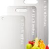 Experience a new level of kitchen efficiency with our premium titanium cutting board. Crafted from food-grade pure titanium, this titanium chopping board is built for durability, hygiene, and everyday performance. Its ultra-smooth, non-porous surface resists stains and odors, making cleanup fast and effortless—just rinse or place it in the dishwasher. Designed with a double-sided cutting surface, it helps separate strong food odors: one side is ideal for fruits and vegetables, while the other is perfect for meat and seafood. The knife-friendly surface preserves blade sharpness, minimizing wear over time. Available in three convenient sizes: Small (11.8" x 7.9"), Medium (13.2" x 9.4"), and Large (15.7" x 10.8") — this titanium cutting board fits seamlessly into any kitchen setup, whether compact or spacious. Lightweight yet sturdy, it’s also ideal for outdoor cooking, picnics, or camping. Featuring a hanging hole for easy storage, this board combines practicality, cleanliness, and modern design into one essential kitchen tool.