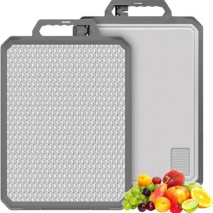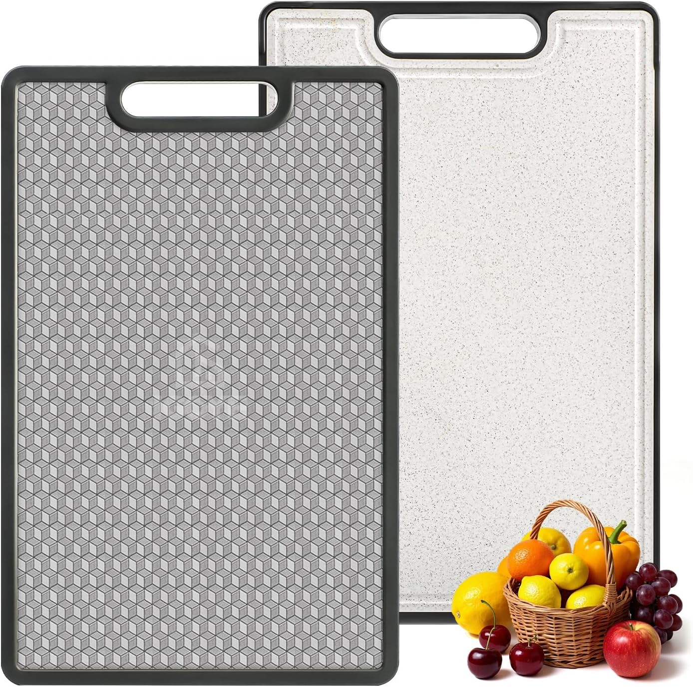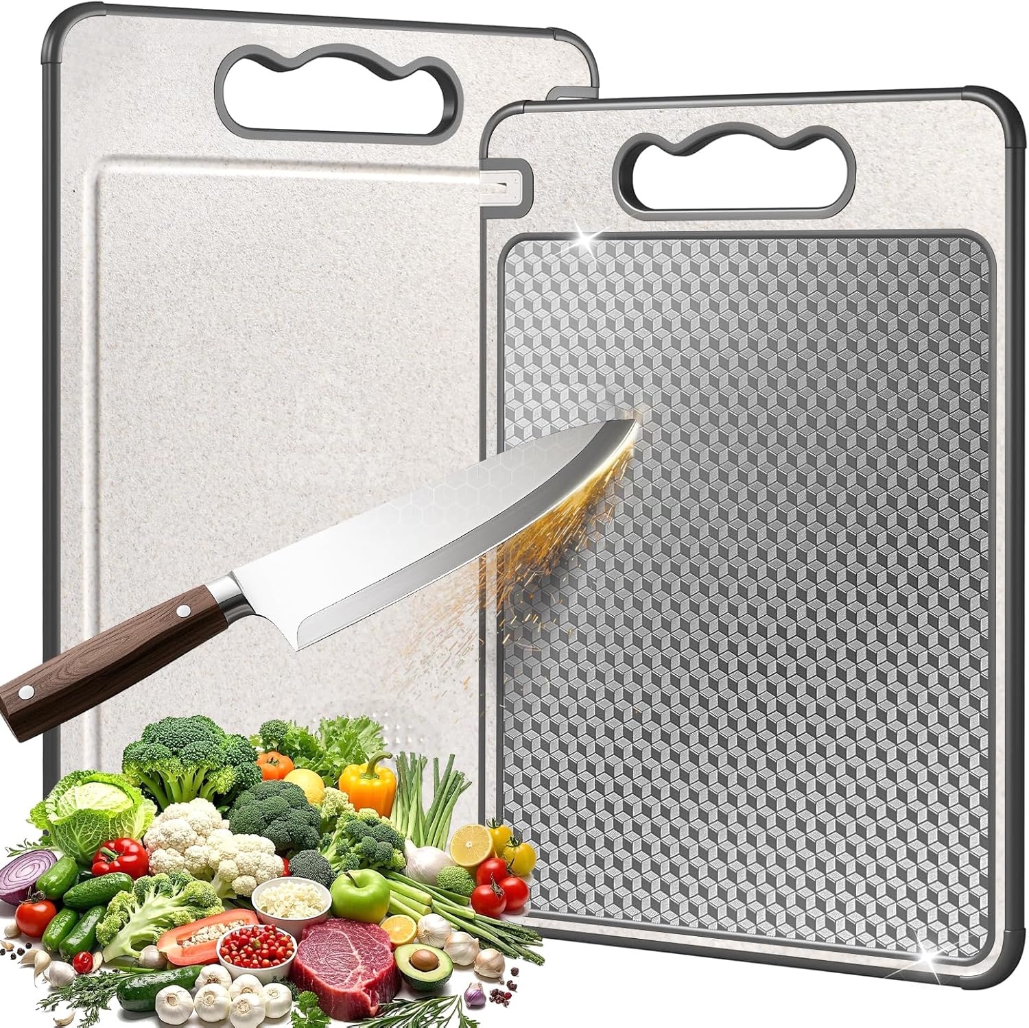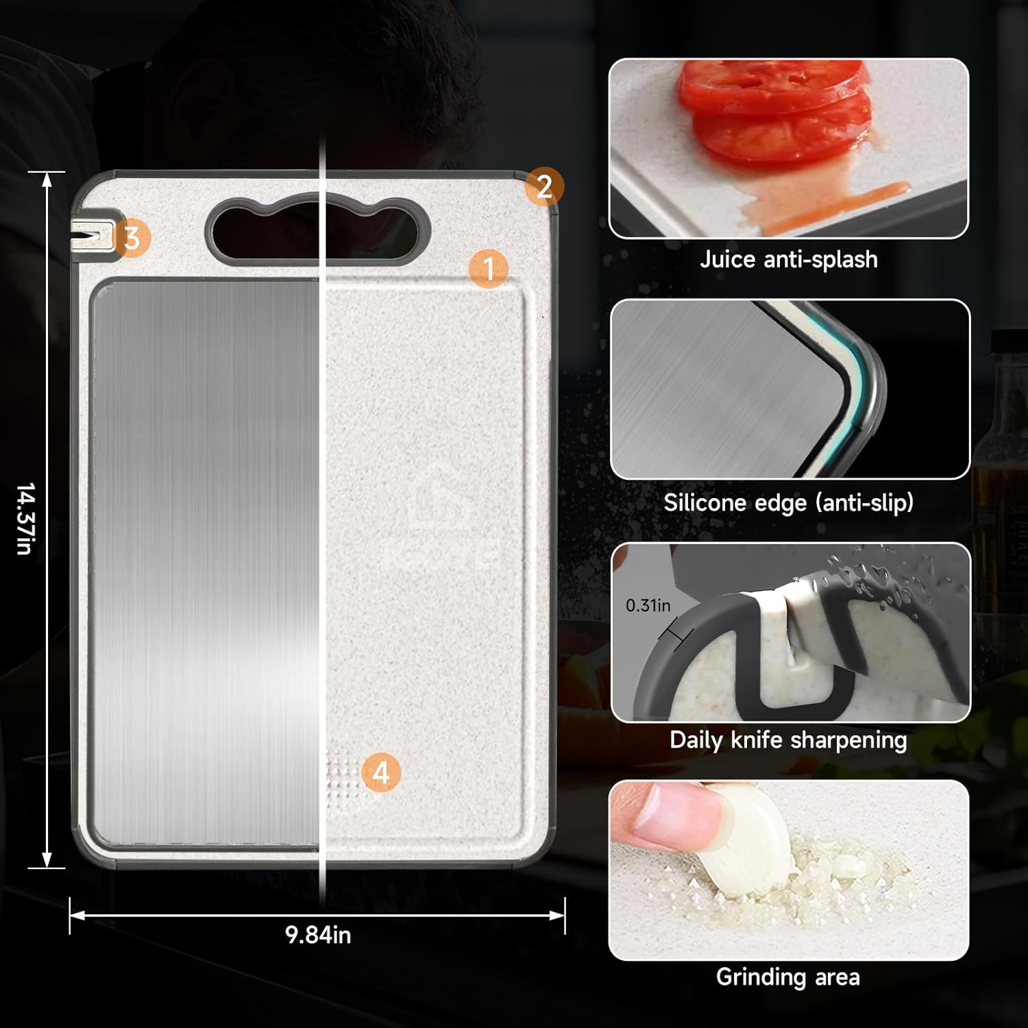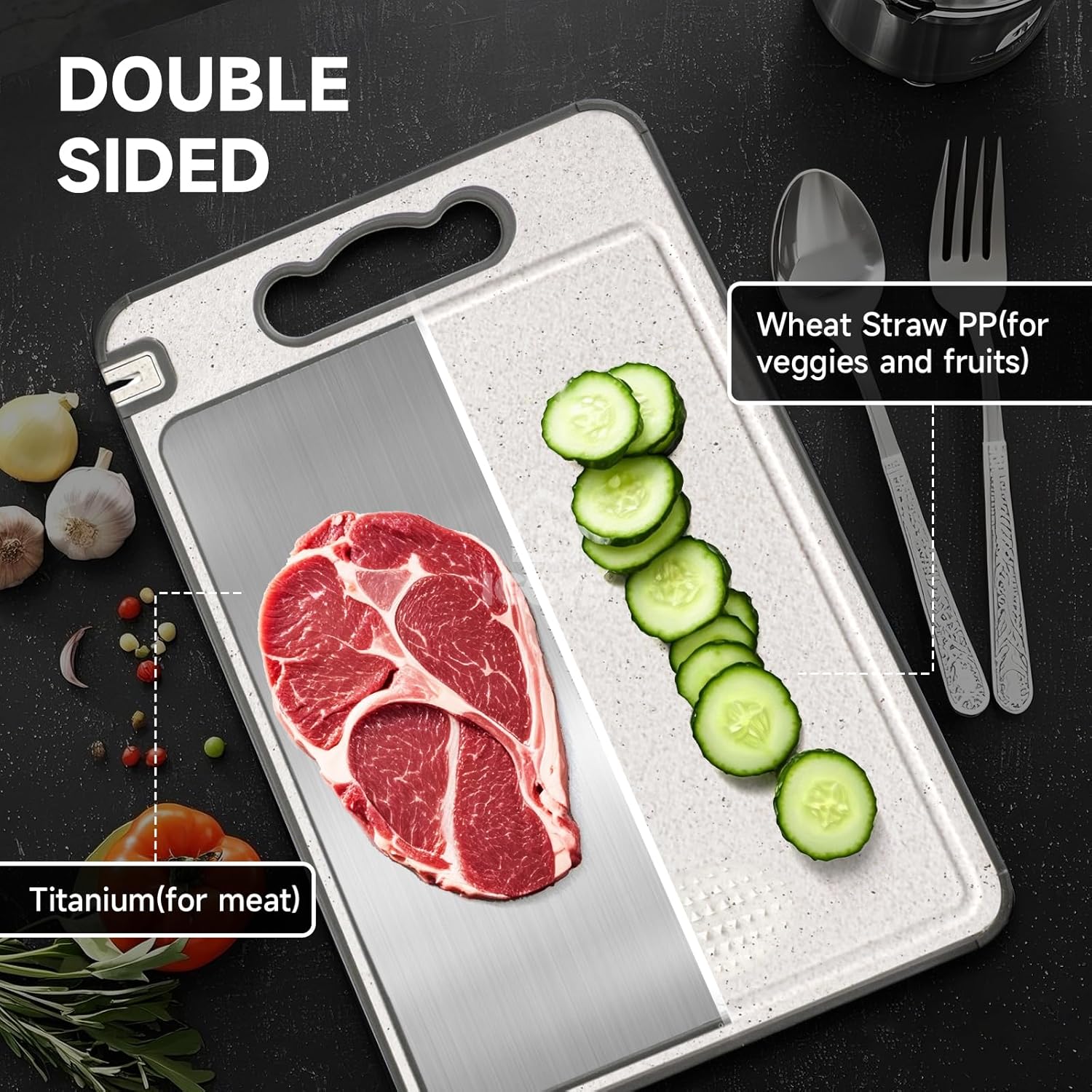 Titanium Cutting Board, Double Sided Chopping Board for Kitchen, Non Toxic Non Slip Cutting Board 14.37″*9.84″, Food-Grade, Dishwasher Safe (1PCS of Pack,1 side Titanium Other side Wheat Straw PP)
