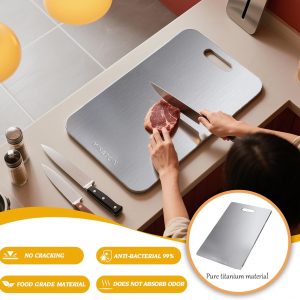 Perfect fit! Titanium cutting boards are lightweight (only 0.4-0.9kg) and corrosion-resistant, making outdoor dining safer in rainy and humid environments.