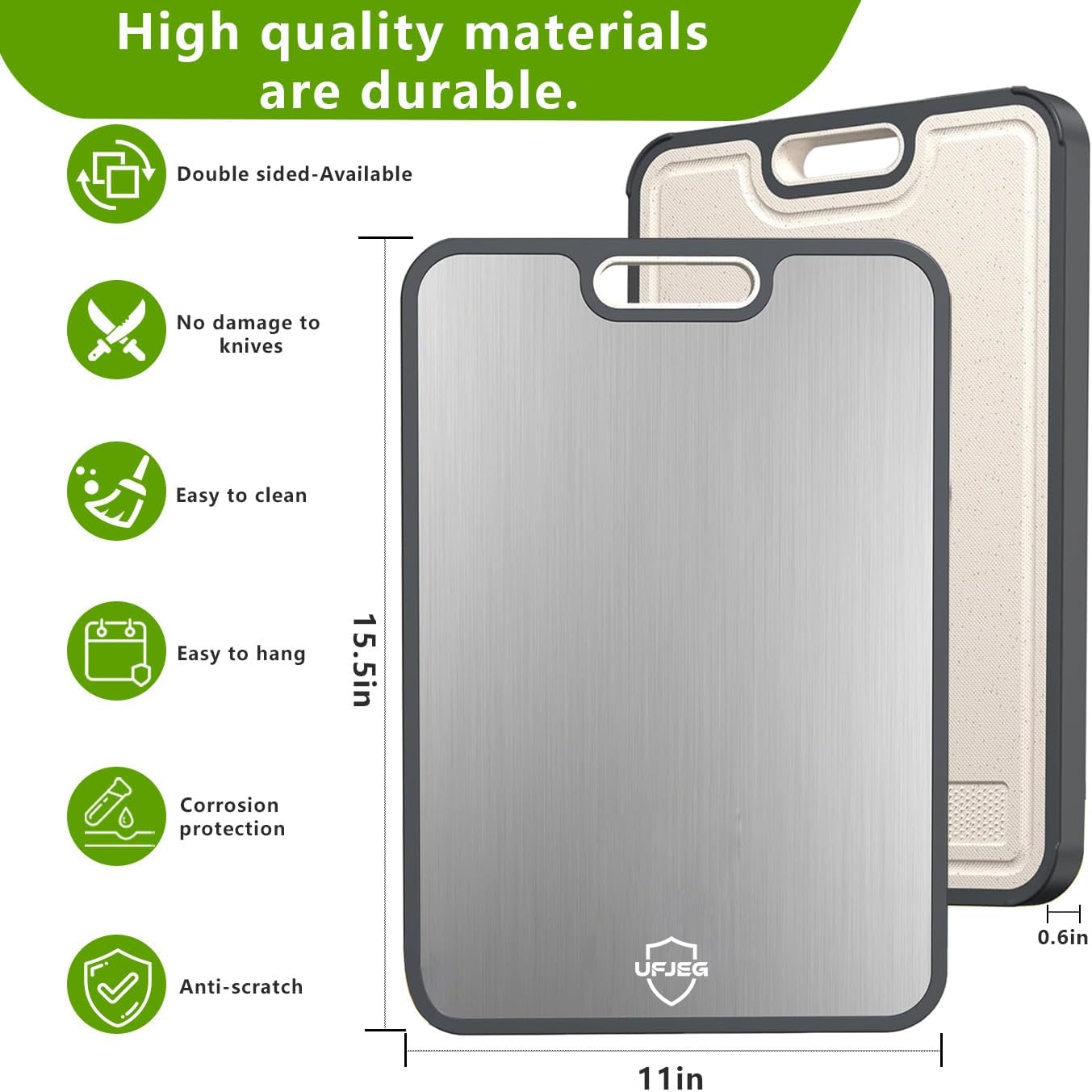 UFJEG Titanium Cutting Board for Kitchen, Cutting Board Double Sided Food Grade, Pure Titanium and Wheat Straw PP for Chopping Meat\/Vegetables, Dishwasher Safe Easy to Clean Large Size 15.5\u201D×11\u201D