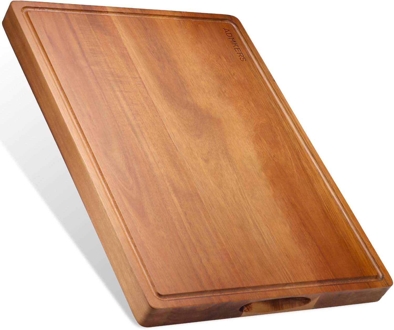 Wood Cutting Board, Large Cutting Boards for Kitchen, Thick Chopping Board with Deep Juice Groove and Handles, Wooden Charcuterie Board for Meat, Turkey, fruit and cheese. (17x12x1 inch)