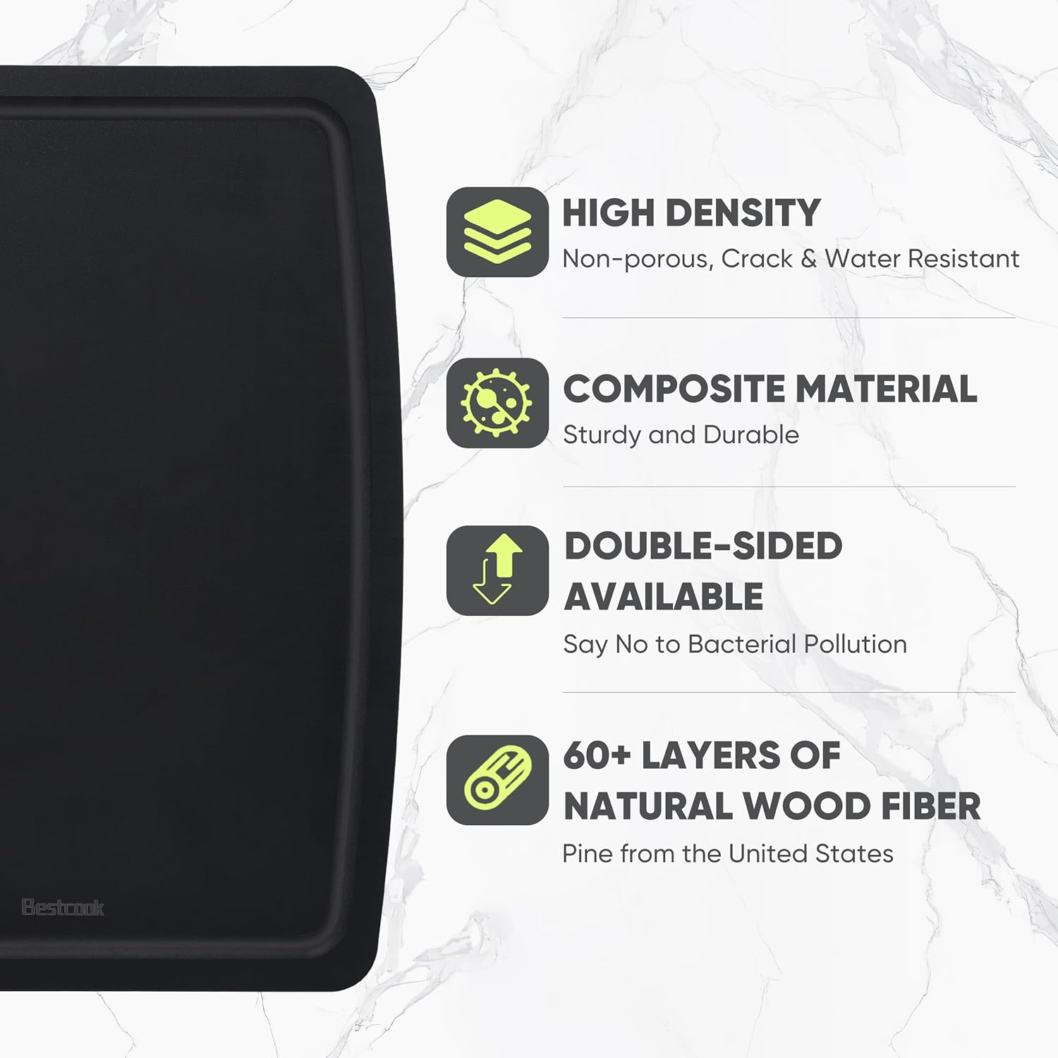 Wood Fiber Cutting Board for Kitchen – Wood Fiber Composite Cutting Board with Juice Groove and Non-slip Feet, Dishwasher Safe, Knife-Friendly Chopping Board for Meat, Bread, Fruit, 14.6\u201Dx10.8\u201D