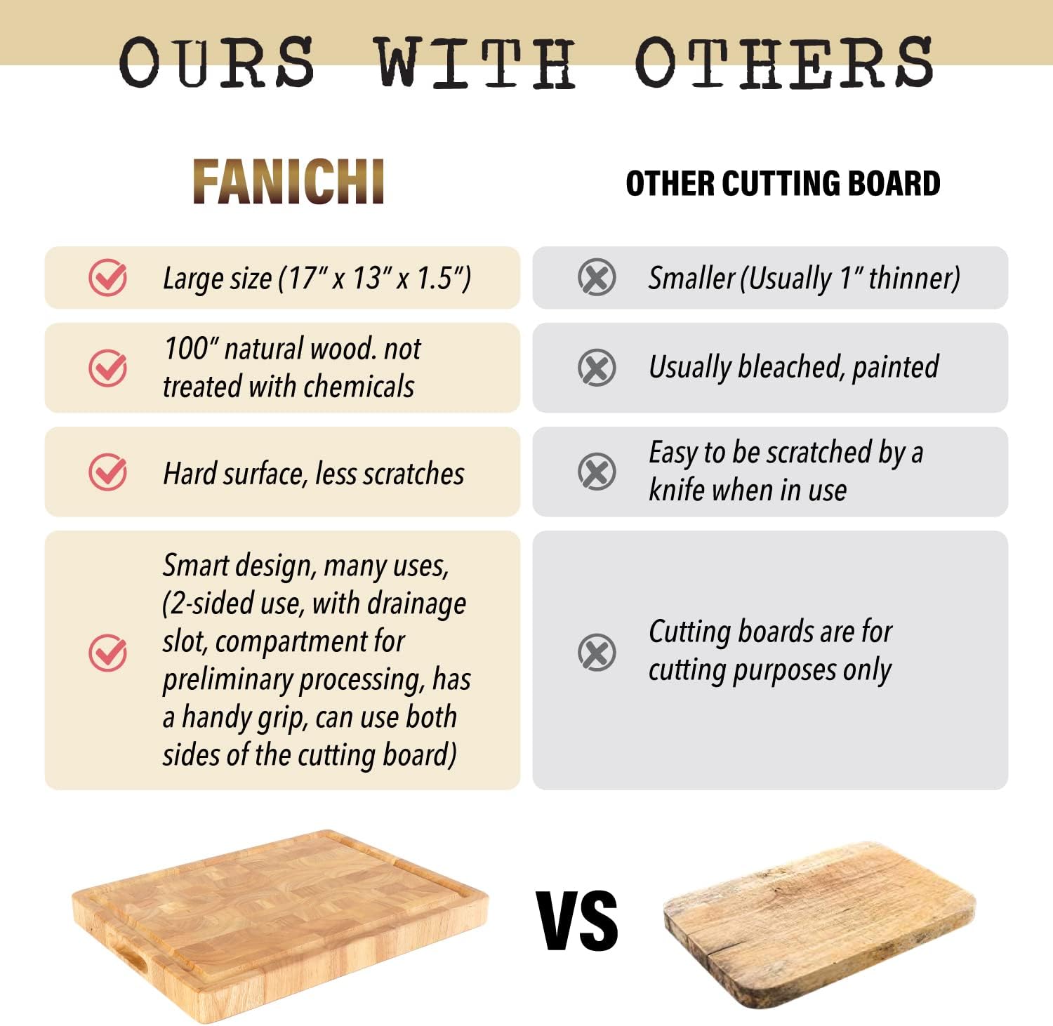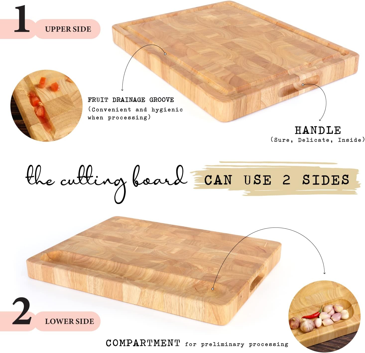 Wooden Butcher Block End Grain Cutting Board – 17x13x1.5in Reversible Multipurpose Chopping Board with Juice Groove, Cracker Holder & Inner Handles